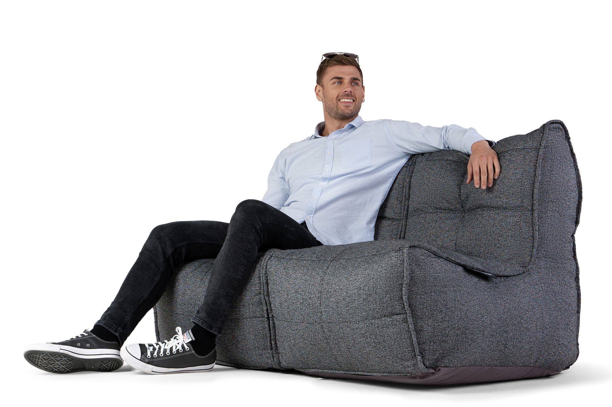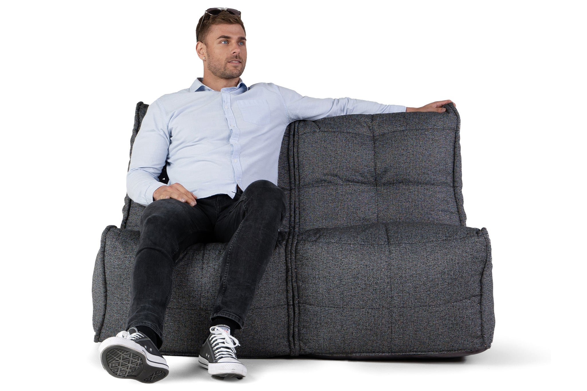 Twin Couch Bean Bags in Titanium Weave (Easy-Clean, Pet-Friendly, In/Outdoor)